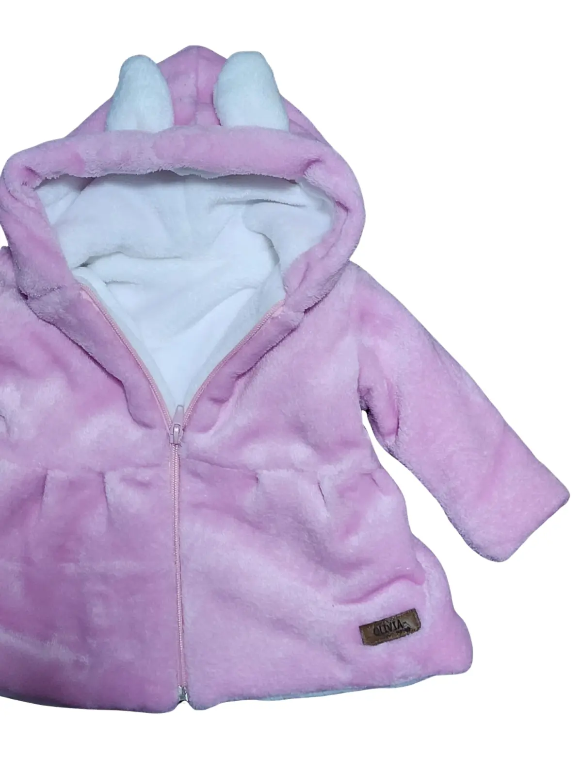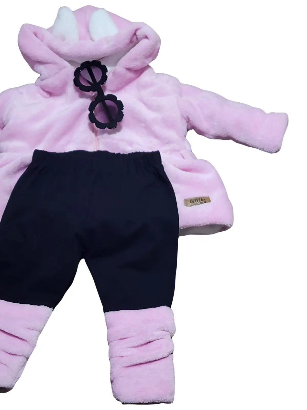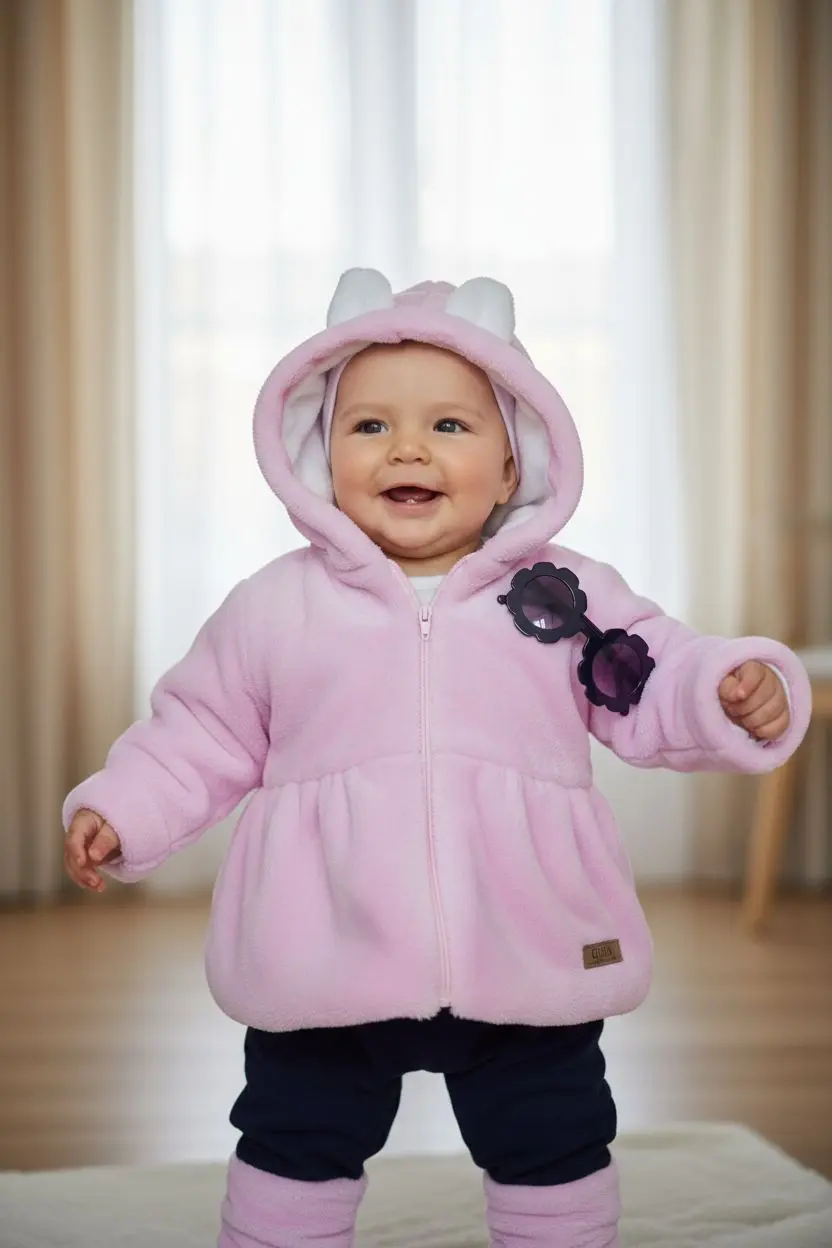 ¡Nuestra conejita favorita ya tiene su outfit! ? Presentamos este conjunto de dos piezas, ideal para las aventuras diarias de tu pequeña. El abrigo de felpa rosa con sus adorables orejitas ? la convertirá en la protagonista de todas las miradas. Completa el look con los leggings a juego. ¡La ternura está garantizada!