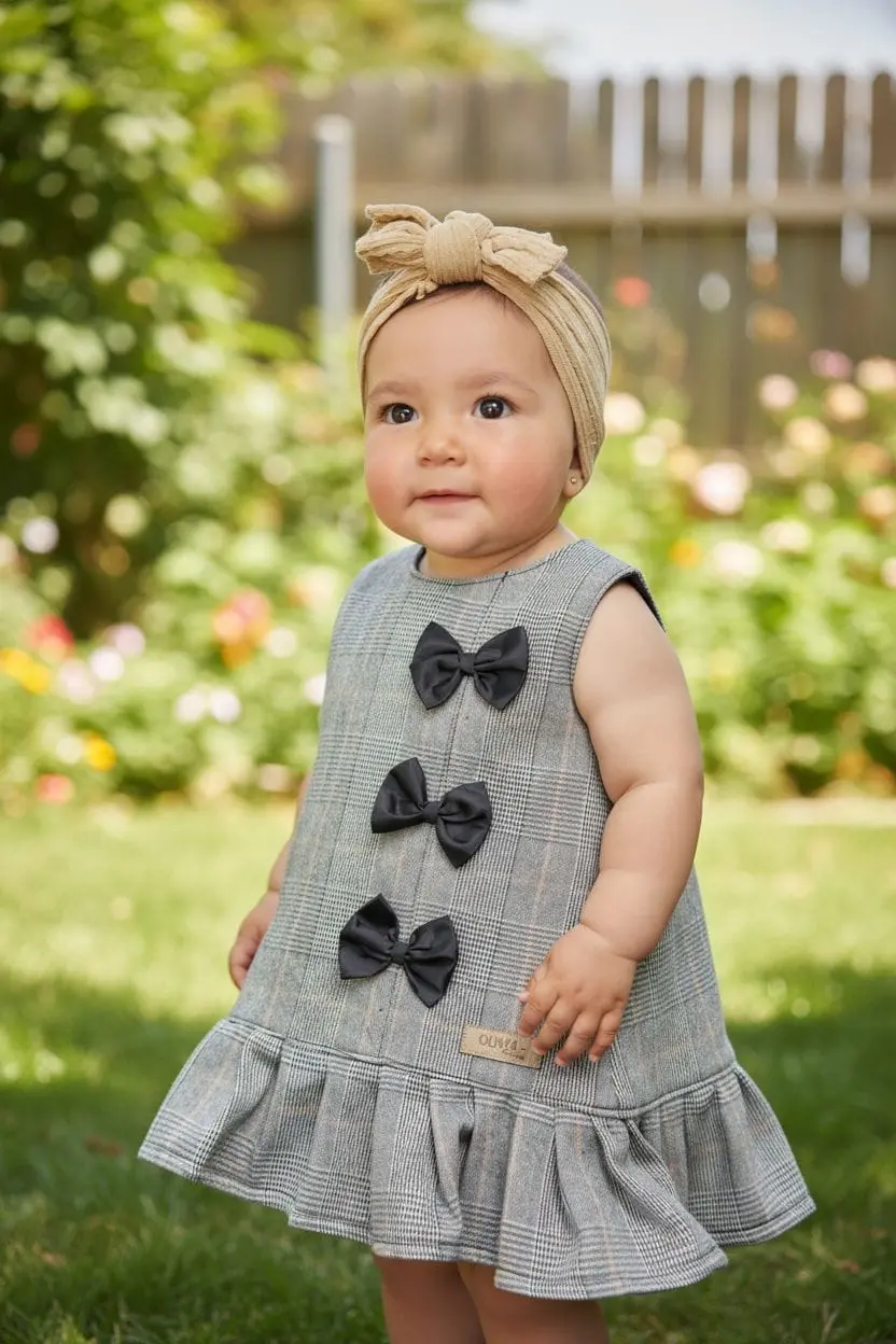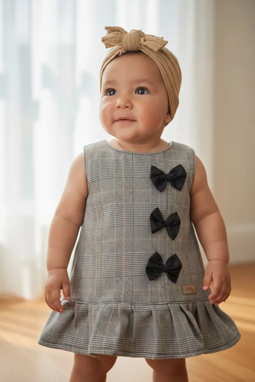 Este vestido es perfecto para que tu peque帽a se vea como una princesa. Con su estampado de cuadros cl谩sico y esos lazos negros que le dan un toque de encanto, es la elecci贸n ideal para un d铆a de juegos, una fiesta o una sesi贸n de fotos. Es tan c贸modo y lindo que no querr谩 quit谩rselo. 隆Es amor a primera vista!